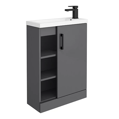 (1) Apollo2 600mm Single Door / Open Shelf Floor Standing (Compact) Unit – Gloss Basalt Grey