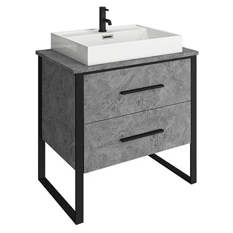 (1) Arezzo 800 Concrete-Effect Matt Black Framed 2 Drawer Vanity Unit with Worktop