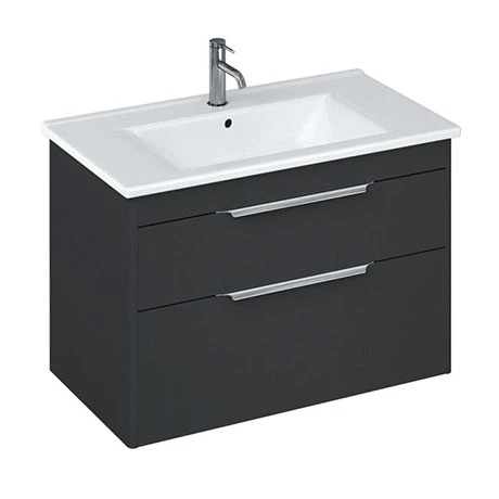The Shoreditch furniture collection from Britton Bathrooms offer a range of storage solutions to suit every personal preference and bathroom size, especially designed for its environment. This 850mm Wall-Hung Double Drawer Vanity Unit in Matt Grey comes with soft closing drawers preventing slamming and therefore offering protection to your bathroom furniture. The unit is manufactured in high quality 16mm medium density fibre board and comes supplied with chrome handles as standard.