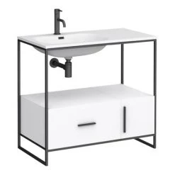 Venice 900 Black Frame Basin Washstand incl. Solid Stone Basin