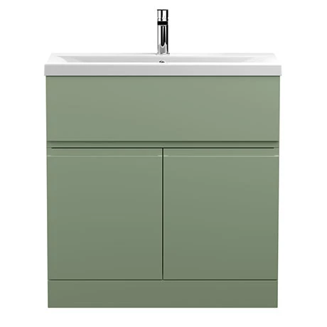 (1) Urban Satin Green 800mm Floor Standing 2-Door/Drawer Vanity Unit – URB828