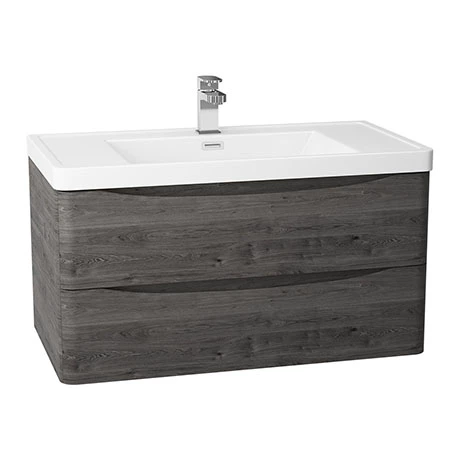 A minimalist design combines with maximum storage in the Monza Graphite Oak Vanity Unit. This 900mm wide, wall hung vanity unit has two generously proportioned soft closing drawers for storing your bathroom essentials. It’s wall hung design will free up floor space giving the illusion of a bigger bathroom and the rounded corners on the drawers and the basin, help to create a stunning focal point and work to elevate the style of your space. If you love this Graphite Oak vanity unit, you might appreciate the matching Graphite Oak Monza Tall Storage Unit for even more cupboard space.