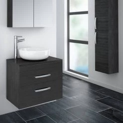 Brooklyn Wall Hung Countertop Basin Unit – Black – 605mm 2 Drawer incl. Basin