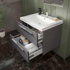 Hudson Reed Coast 500mm Wall Mounted Vanity Unit with Open Shelf & Basin – Grey Gloss/Driftwood