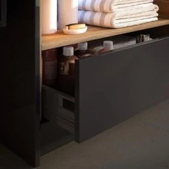 Hudson Reed Coast 800mm Wall Mounted Vanity Unit with Open Shelf & Basin – Grey Gloss/Driftwood