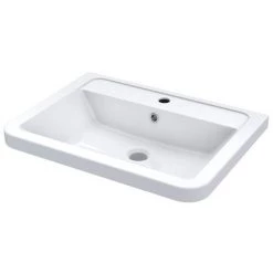 Nuie 600 x 400mm Wall Mounted Mid Edge Basin & Cabinet – Gloss White – VTWE600
