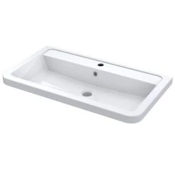 Nuie – 1000 x 400mm Wall Mounted Mid Edge Basin & Cabinet – Gloss White – VTWE1000