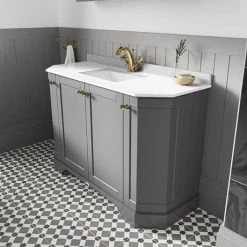 Old London Storm Grey Art Deco 1000mm Angled Cabinet with White Marble Basin Top