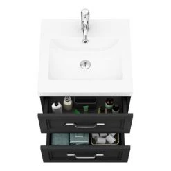 Period Bathroom Co. Wall Hung Vanity – Matt Black – 500mm 2 Drawer with Chrome Handles