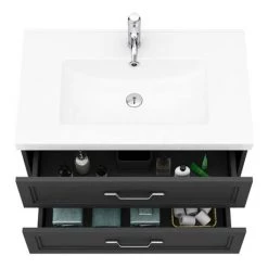 Period Bathroom Co. Wall Hung Vanity – Matt Black – 800mm 2 Drawer with Chrome Handles