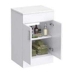 Toreno Floor Standing Countertop Vanity Unit – Gloss White – 605mm with Chrome Handles