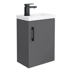Apollo2 405mm Gloss Grey Compact Wall Hung Vanity Unit w. Matt Black Handle