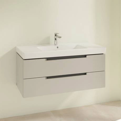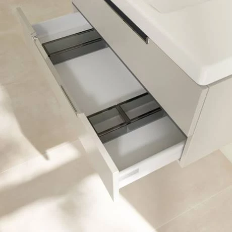 Subway 2.0 bathroom furniture by Villeroy & Boch brings diversity to the cosy bathroom. This Soft Grey Wall Hung 2-Drawer Vanity Unit has generous storage space thanks to clever interior arrangement and its shock-absorbing, soft-closing drawers that slows down the drawer and automatically closes it, slowly and silently. With a range of colours, the modern design of the bathroom furniture by Subway 2.0 gives every bathroom a fresh and natural look.