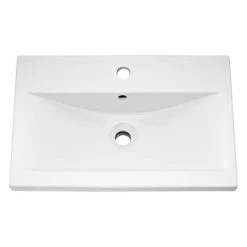 Arezzo Floating Basin Shelf with Drawer – Matt White – 600mm inc. Black Curved Rectangular Basin