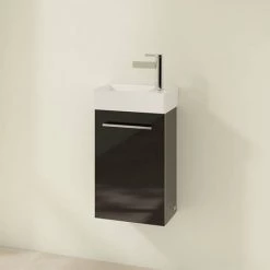 Villeroy and Boch Avento Crystal Black 360mm Wall Hung Vanity Unit with Right Bowl Basin
